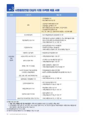 사회통합전형 대상자 지원 자격별 제출 서류